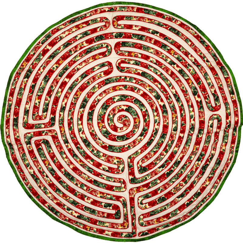Die Schnecke als Annäherung an die Goldenen Spirale, unter Benutzung von Viertelkreisen und der Fibunacci-Folge: einmal getangelt, einmal genäht.